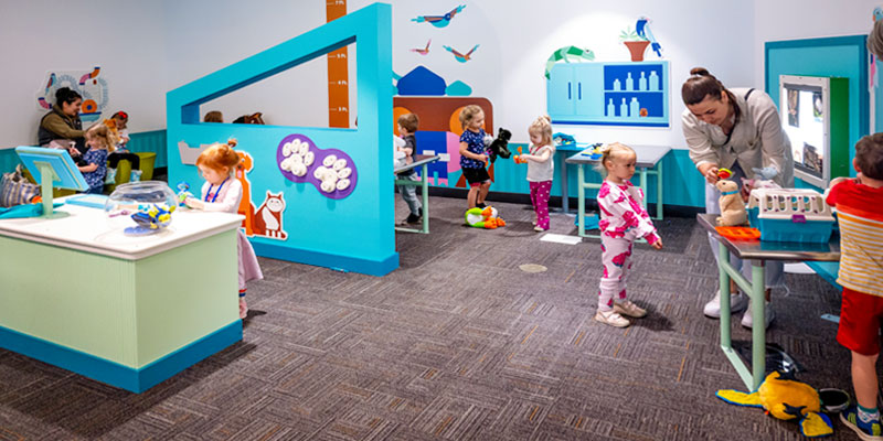 HEALTHY CRITTERS VET CLINIC CLIENT: Douglas County Libraries: Highlands Ranch SERVICES: Design-Build; Concept Design; Design Package YEAR: 2025 At Healthy Critters Vet Clinic, kids can explore the fascinating world of veterinary clinics for a diverse array of pets. This exhibit offers hands-on learning opportunities with a wide variety of animals, including birds, reptiles, and mammals. […]