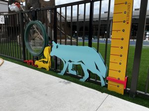 CDC consisted predominantly of three separate, fenced playground areas. Each playground will be designated to a specific age range (0 to 18 months, 18 to 3 years, 3 to 5 years). Exhibits are designed to work with the preexisting fence lines around each playground, providing experiences both inside and outside of the zones. Additional exhibits will be installed in the empty spaces that remain outdoors. Two large roofed patios focused on exhibits themes of role play, free build, wind, and simple machines. Exhibits are designed to cater to each individual age range on the inside of each playground. Exhibits themes are focused to match the natural aesthetic of the playground equipment to create a more cohesive environmental look and feel.