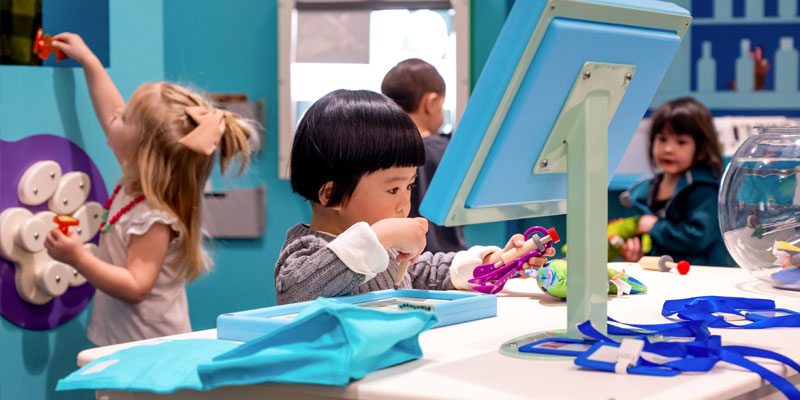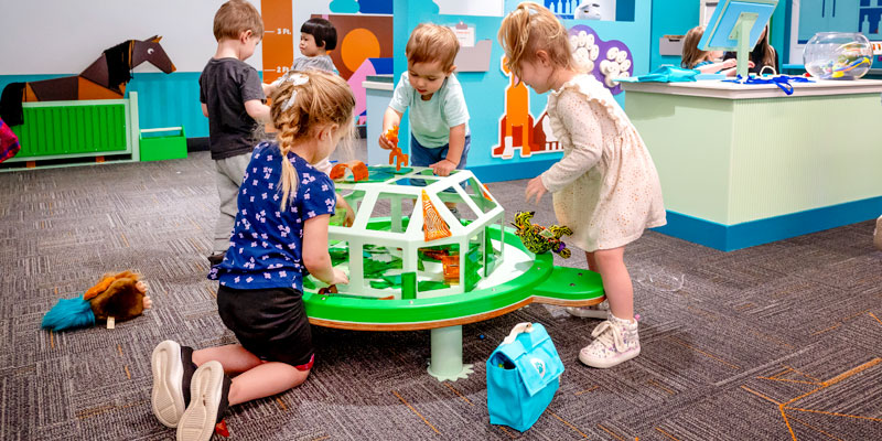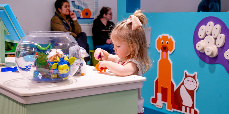 At Healthy Critters Vet Clinic, kids can explore the fascinating world of veterinary clinics for a diverse array of pets. This exhibit offers hands-on learning opportunities with a wide variety of animals, including birds, reptiles, and mammals. Children will discover the importance of stewardship and the love and care all creatures need, fostering a deeper understanding of nature and the role of vets in maintaining animal health.